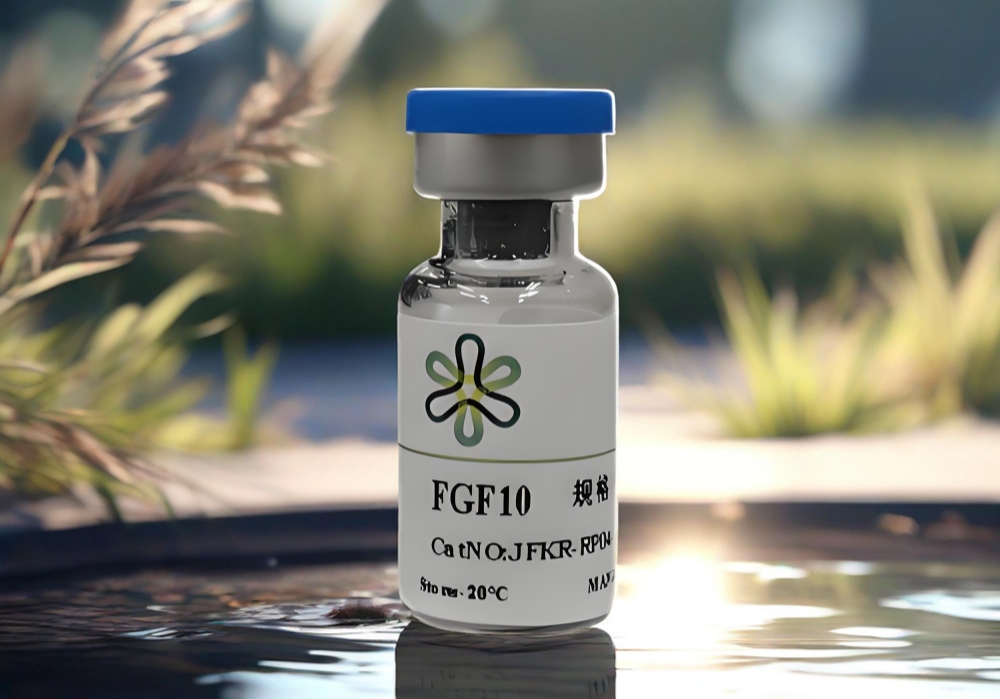 FGF10 is a member of the fibroblast growth factor (FGF) family. FGF family members possess broad mitogenic and cell survival activities, and are involved in a variety of biological processes, including embryonic development, cell growth, morphogenesis, tissue repair, tumor growth and invasion. This protein exhibits mitogenic activity for keratinizing epidermal cells, but essentially no activity for fibroblasts, which is similar to the biological activity of FGF7. Studies of the mouse homolog of suggested that this gene is required for embryonic epidermal morphogenesis including brain development, lung morphogenesis, and initiation of lim bud formation. This protein is also implicated to be a primary factor in the process of wound healing.(FGF10是成纤维细胞生长因子(FGF)家族的成员。FGF家族蛋白具有广泛的促有丝分裂和细胞存活活性,参与多种生物学过程,包括胚胎发育、细胞生长、形态发生、组织修复、肿瘤生长和侵袭。该蛋白对角质化表皮细胞表现出促有丝分裂活性,但对成纤维细胞基本无活性,这一特性与FGF7的生物学活性相似。小鼠同源基因研究表明,该基因是胚胎表皮形态发生(包括大脑发育、肺形态发生和肢芽形成起始)所必需的。该蛋白也被认为是伤口愈合过程中的关键因子。)
