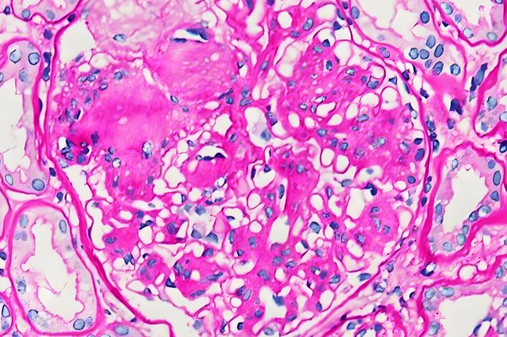 PAS染色: 严格按照标准操作流程进行PAS染色,包括过碘酸氧化、雪夫试剂染色、苏木素复染等步骤。