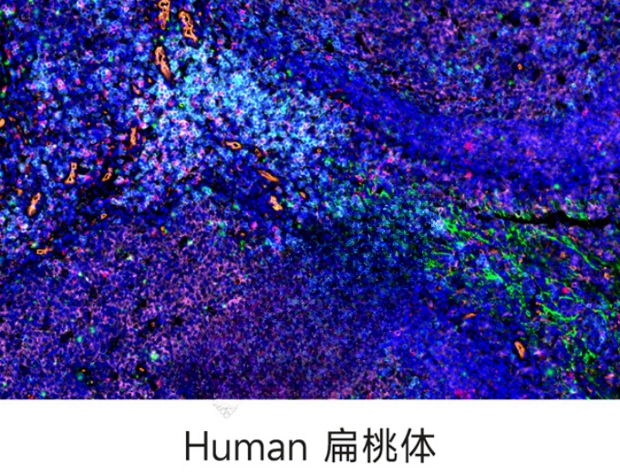 本服务基于专业级全自动荧光扫描平台,采用多重免疫荧光标记技术,实现常规组织切片5种目标蛋白标记物+DAPI核染(共6色)同步检测。通过优化的光谱成像系统和智能解谱算法,可获得0.3μm/pixel的高清多通道荧光图像,精确解析多种生物标志物的表达特征和空间分布关系。数字切片扫描是将物质化的玻片标本快速数字化的过程,能高效、高清晰、全信息的图像采集,是真正脱离显微镜的阅片方式。能长期保存,可满足临床、科研、教学。