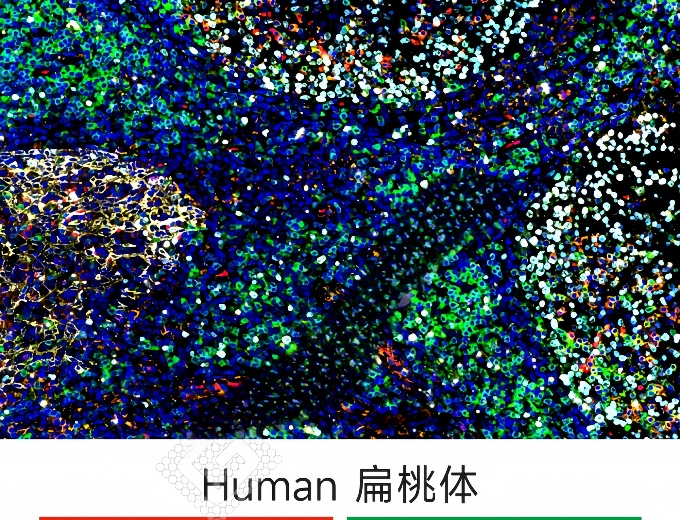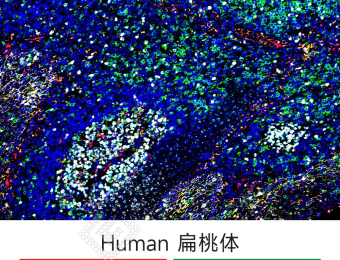 本服务采用先进的多光谱荧光成像技术,可在普通组织切片上实现6种目标蛋白标记物+DAPI核染(共7色)同步检测。通过专业级荧光显微镜系统和光谱解卷积算法,提供高分辨率(0.25μm/pixel)的多通道荧光图像,实现复杂生物标志物网络的精准解析。