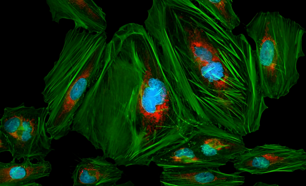 共聚焦显微镜:高分辨率Z-Stack成像,三维重构细胞骨架网络。