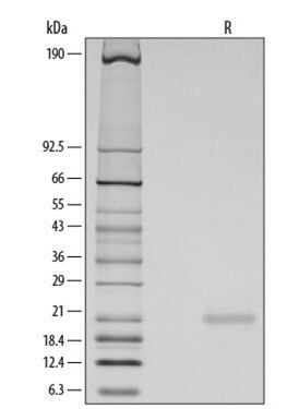 Lane R: FGF10 单一条带(19.5 kDa)